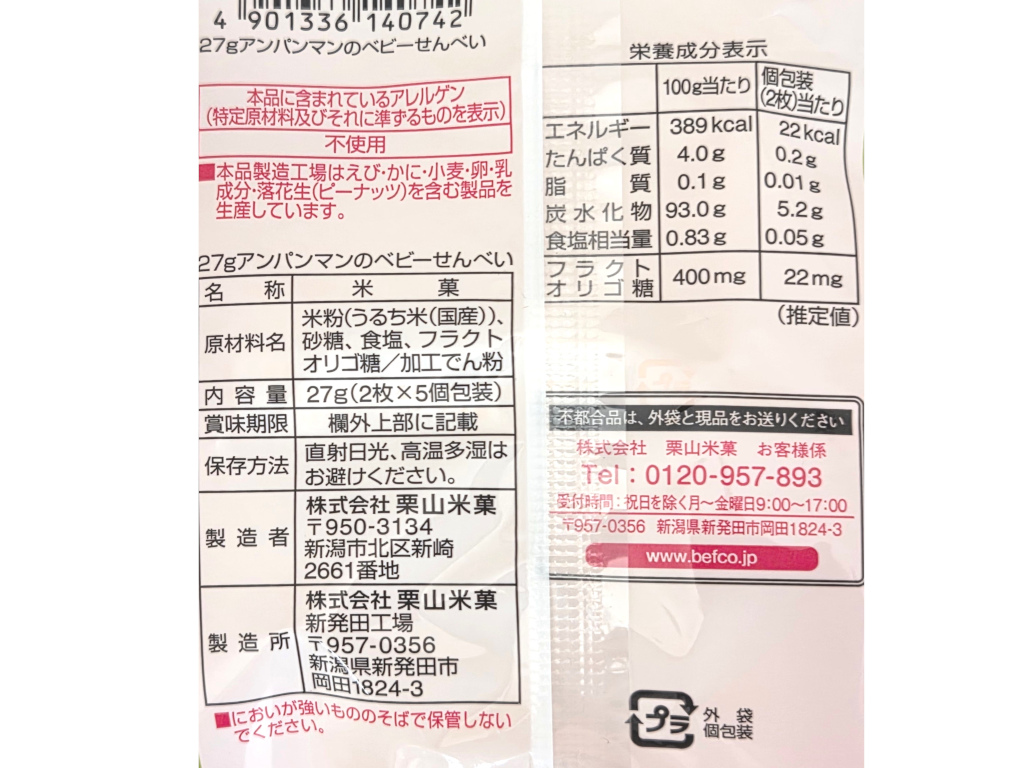 27gアンパンマンのベビーせんべい